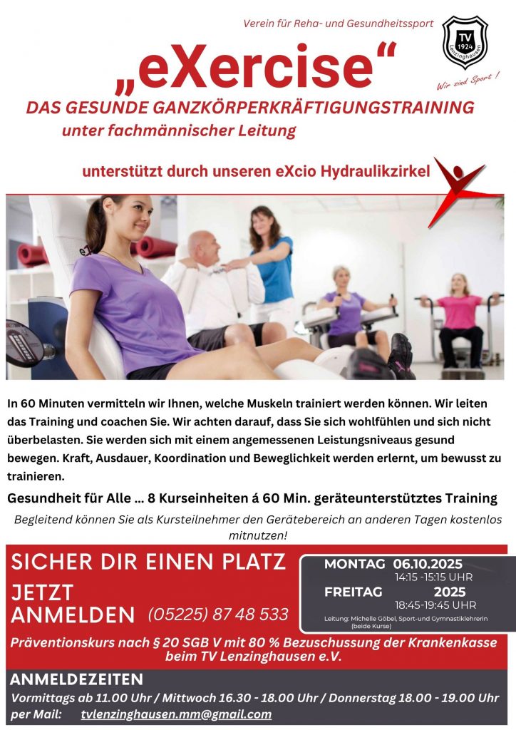 Begleitend können die Teilnehmer während der gesamten Laufzeit des Kurses, den „eXcio“ Gerätezirkel auch an allen anderen Tagen kostenlos mitbenutzen.